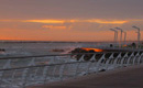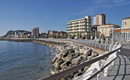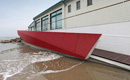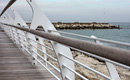 The promenade was partially paved with quartz-slate stone and partly with Ipé wood, separated by a number of LEDs, while the handrail, the stairs down to the western beach and the light poles (designed by Federico Gessi) are in heat-glazed steel. The design concept focused on directly less light toward the sea so as to not compromise the view. This goal was repeated in the end portion of the new parapet, which features an open design to enable the best view of the sea from a sitting position, while the difference in level between the beach and the quay, to the west, made it possible to create an architectural element with a strong visual impact: a dynamic, three-dimensional shape in a variable section lightened by the use of microperforated sheet metal.